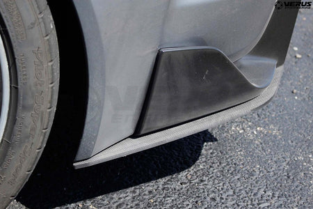 We complement the addition of the front splitter with our side splitters! These units were designed specifically to flow with the factory side-splitter and feature a horizontal member which reduces the amount of high-pressure air making its way to the bottom side of the vehicle. This high-pressure air produces lift and by reducing this, we reduce lift on the chassis. This is specifically prevalent while the vehicle is in yaw or while turning.